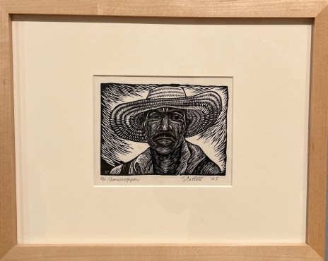 “She unites the sharecropper’s and the campesino’s shared oppression: Black sharecroppers labored in debt peonage to white landowners in the United States, just as in Indigenous campesinos were forced to labor on plantations in Mexico during the late 19th and early 20th centuries.” (Catlett Exhibition)